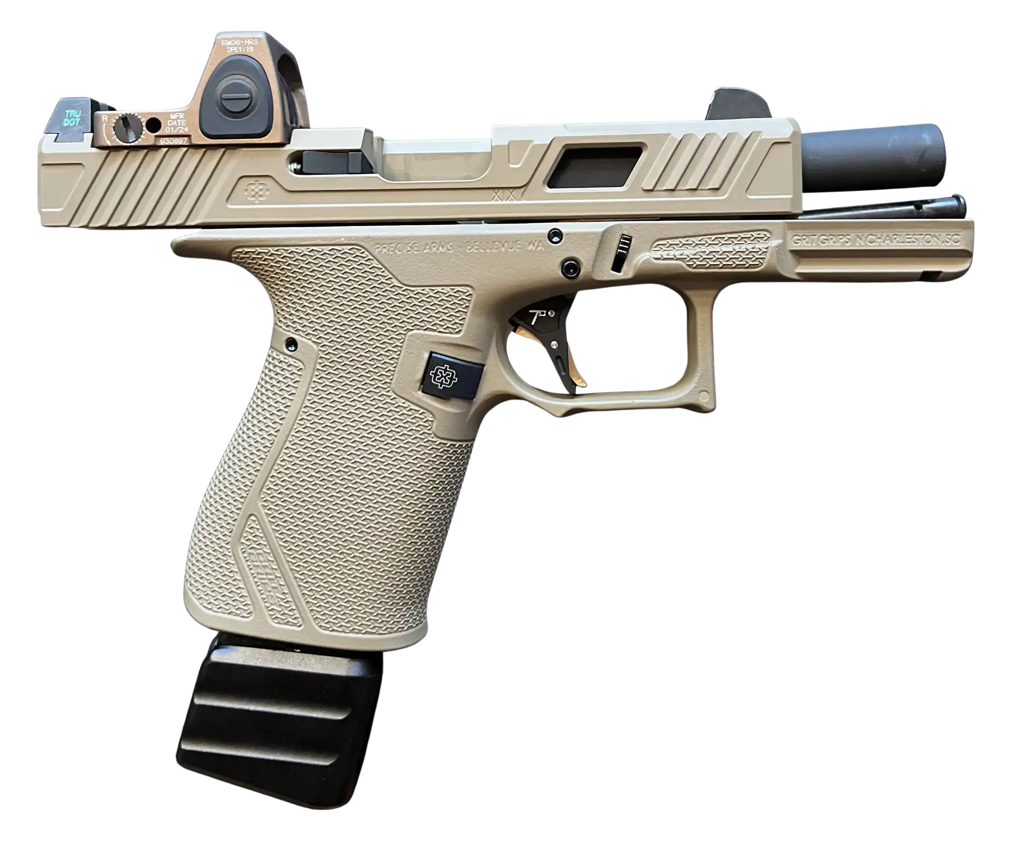 Our flagship Precise Arms model the PA19x9. This 9mm handgun has been designed using only the very best components, and lovingly put together by our lead gunsmith.