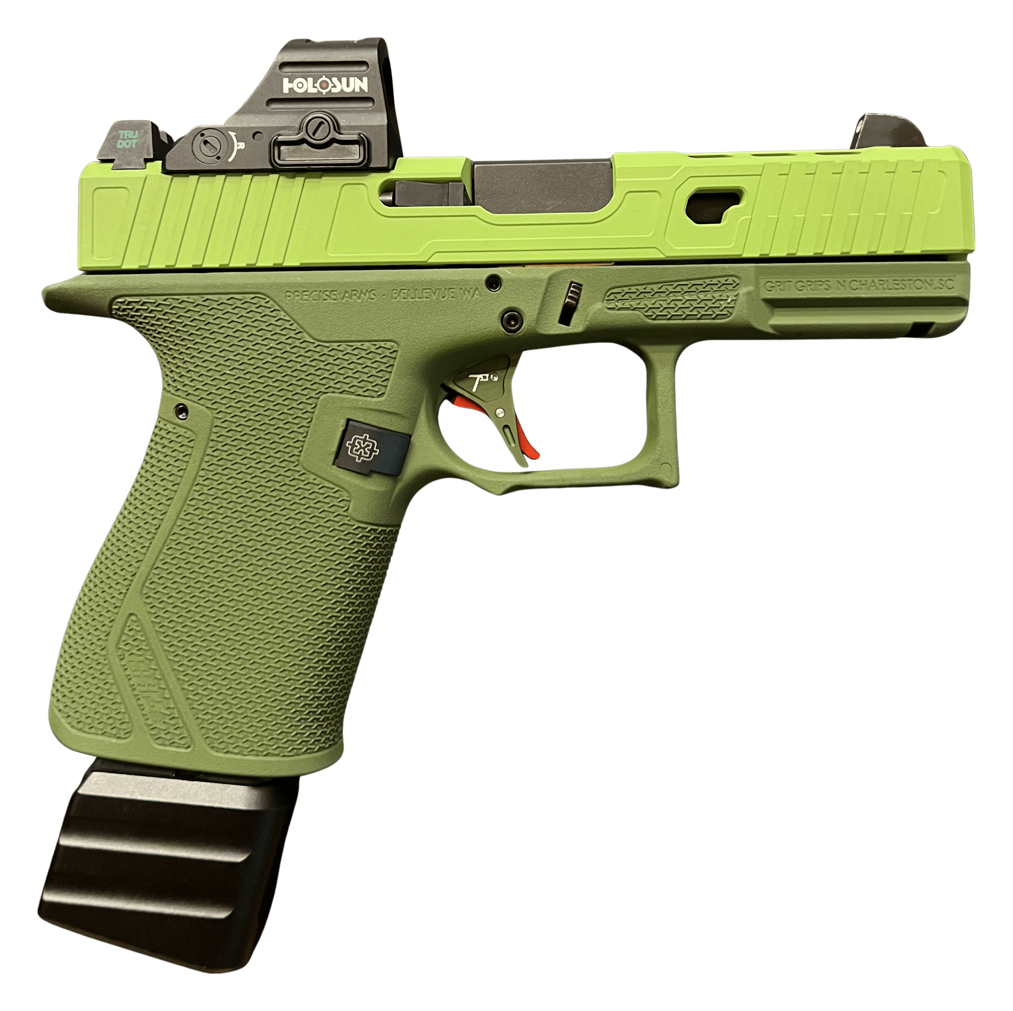 Every single one of our custom handgun comes with 2 Precise Arms 10 round magazines (in accordance with current WA state laws) and a hardshell, lockable Eylarhandgun case that complies with all TSA transportation laws for airline travel.
