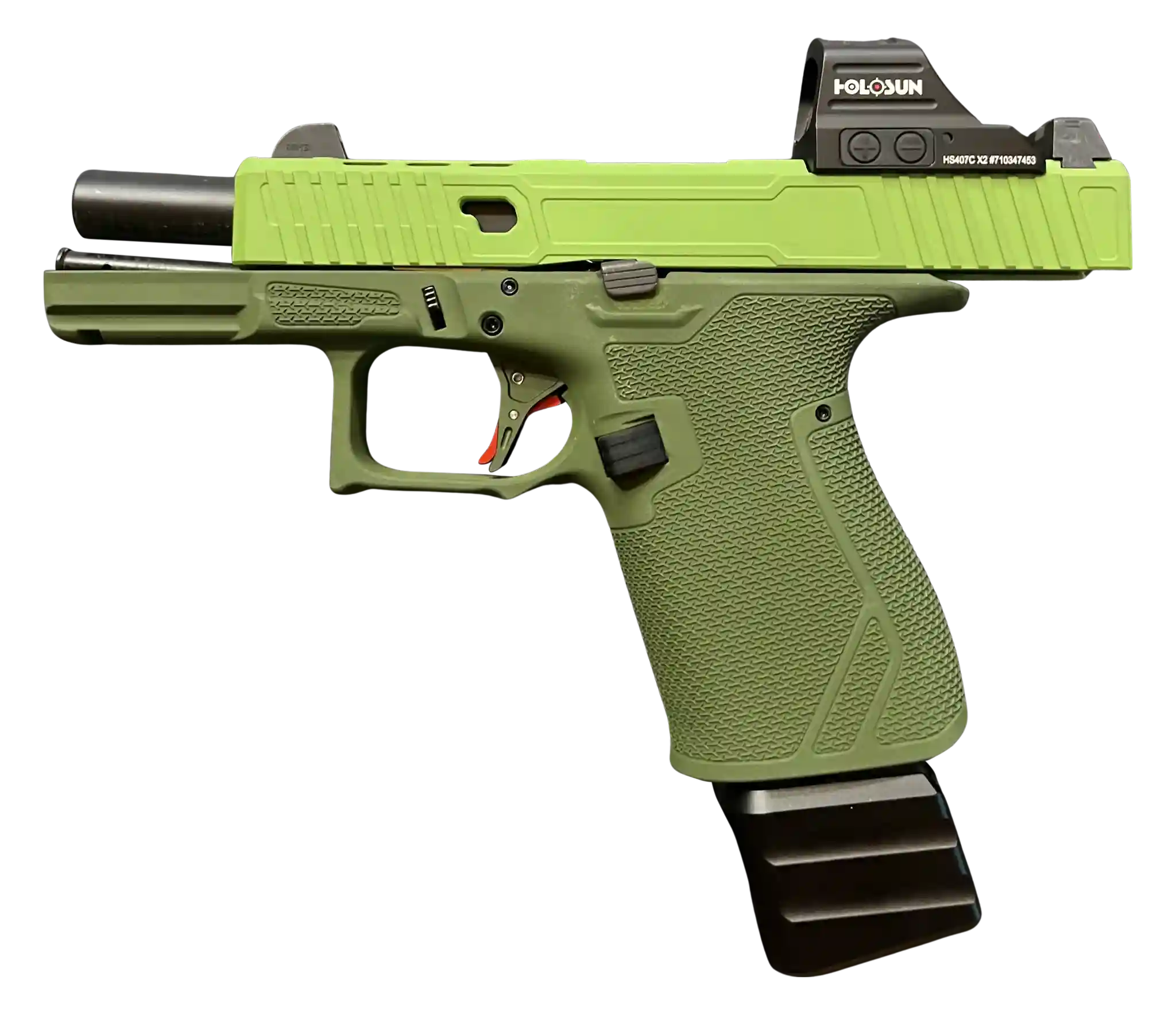 The upper and lower internal parts of this handgun are heavily upgraded throughout to ensure shot after shot reliability every single time you squeeze the trigger.